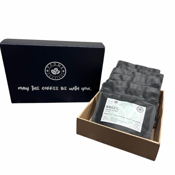 Vo vkusnej krabici nájdete 6ks 100 g balenia rôznych výberových káv z našej pražiarne.